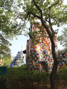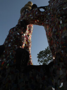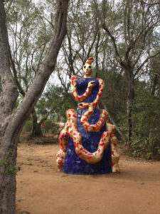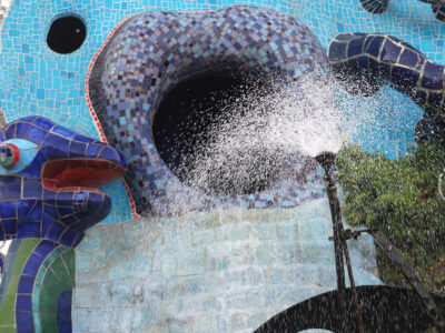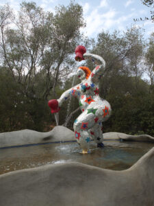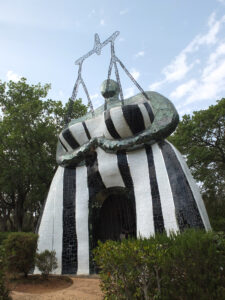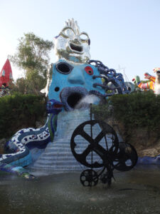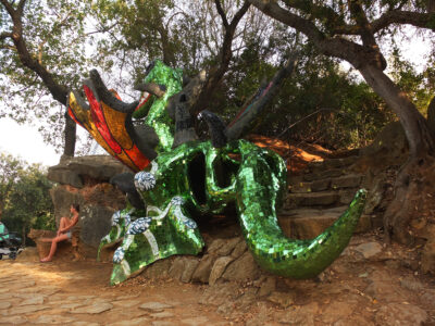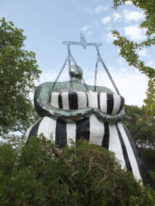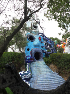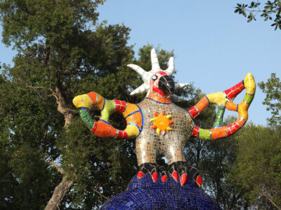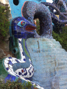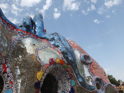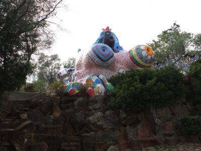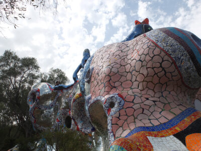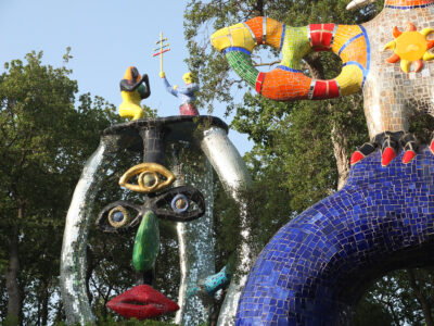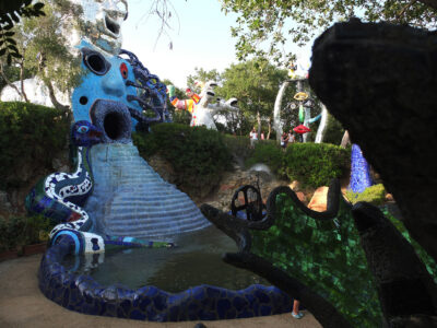 Avec son jardin monumental en Toscane, Niki de Saint Phalle a réalisé son rêve d’égaler le facteur Cheval et Gaudí. Cette œuvre d’art inspirée par la mythologie a mis plus de vingt ans à sortir de terre. Situé sur une colline qui surplombe la campagne toscane, le Jardin des tarots ne ressemble à aucun autre. Ses 22 sculptures monumentales surgissent comme un rêve coloré au milieu des oliviers, des pins et des lauriers et forment un monde onirique où l’art, l’ésotérisme et la mythologie s’entrelacent