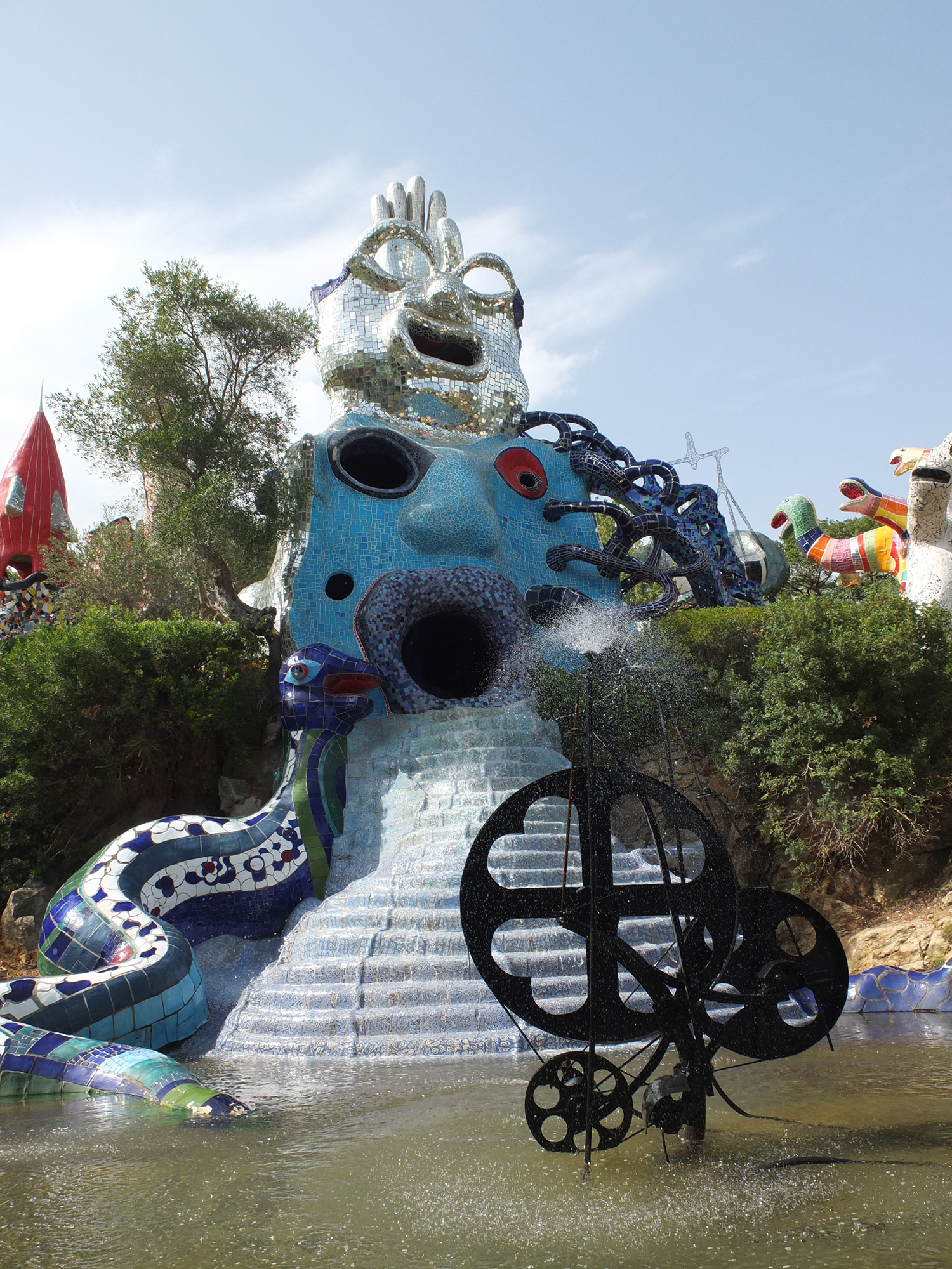 Avec son jardin monumental en Toscane, Niki de Saint Phalle a réalisé son rêve d’égaler le facteur Cheval et Gaudí. Cette œuvre d’art inspirée par la mythologie a mis plus de vingt ans à sortir de terre. Situé sur une colline qui surplombe la campagne toscane, le Jardin des tarots ne ressemble à aucun autre. Ses 22 sculptures monumentales surgissent comme un rêve coloré au milieu des oliviers, des pins et des lauriers et forment un monde onirique où l’art, l’ésotérisme et la mythologie s’entrelacent