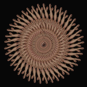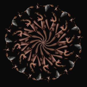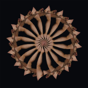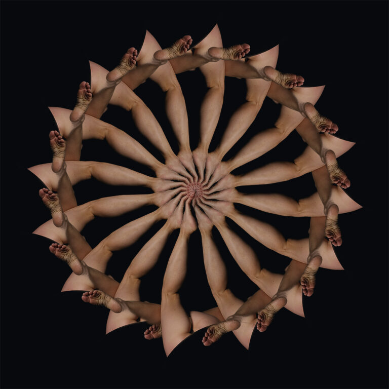 Inspiré par ses recherches plastiques et esthétiques, le photographe prend le temps de transformer le corps humain en calligraphie. « La démocratisation des moyens technologiques me permet de gérer l’ensemble de la chaîne graphique à domicile. Le travail de postproduction, souvent négligé car chronophage, peut devenir soigné lorsqu’on a plus que cela à faire », précise-t-il. Comme des chorégraphies, les kaléidoscopes révèlent la grâce de la modèle, et sa sensibilité. « C’est bien la qualité du mouvement dansé qui donne à ces images leur sens», conclut Antoine Dubroux. Loin de l’anxiété générale, causée par l’enfermement, l’artiste signe ici un éloge du corps – celui qui se contorsionne sur scène, et celui qui apparaît dans l’intimité.